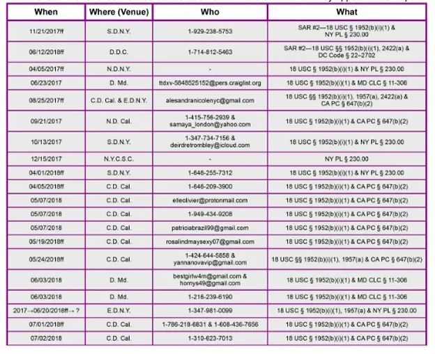 Hunter’s addiction to explicit “webcam” sites fueled his sex addiction. Based on his voluminous internet browser history, emails, and text messages, Hunter began many evenings by patronizing women on these webcam sites and proceed to solicit prostitutes on his own accord or through his network of pimps. For the purposes of illustrating this fact the authors of the report included a mere sample of text message subscription services which alerted Hunter if particular females signed into webcam sites.