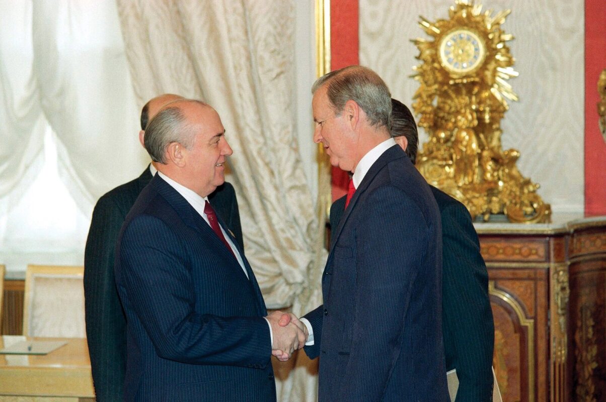 But the dilemma couldn’t be sidestepped so easily. The Soviet Union—which at this point hadn’t yet dissolved—had thousands of troops and hundreds of tactical nuclear weapons in the eastern part of Germany, which gave Gorbachev leverage to undermine any effort to establish a new order in the heart of Europe. Bush, German chancellor Helmut Kohl, and other Western leaders worried about what they might have to concede in order to win his consent to keep a unified Germany in NATO and to get the Soviet troops and weapons out. Remarkably, though, Gorbachev gave up the one strong card in his otherwise meager hand. In a meeting the day after Baker’s, Kohl asked Gorbachev if he agreed “that the Germans themselves must now decide” all questions about unification. Gorbachev allowed that this was “very close” to his view.
