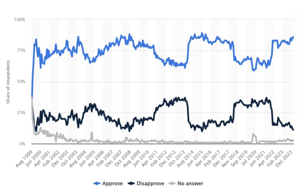 Putin’s Approval or Disapproval Rating in the Levada Poll. Source: Statista