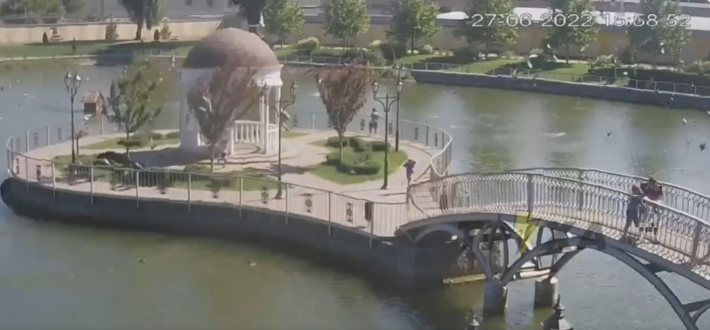 The Ukrainians have published surveillance video from a park catching the moments of the two explosions. A large flash appears and people are running away as some debris falls down.
