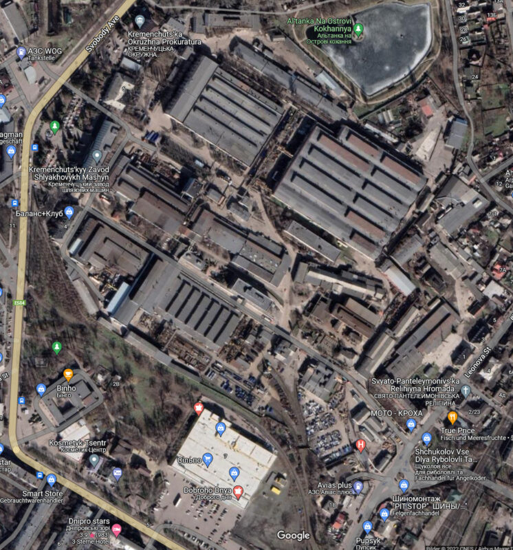 Satellite pictures show that the shopping center is right next to the large Kredmash machine plant. Was that the real target of the attack with the shopping center being an unintended casualty?
