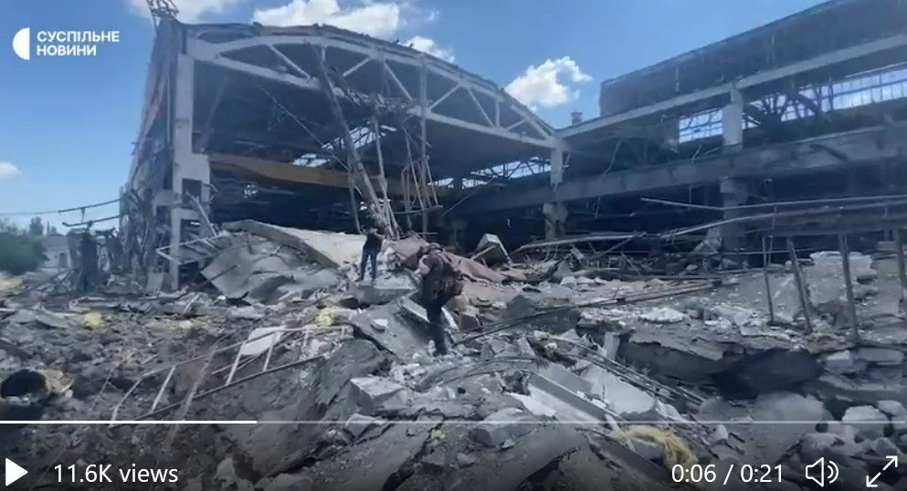 Still not convinced? Well, here is video from a Ukrainian TV station taken on the factory grounds. It is showing a crater and the debris of the factory. The areas where it was hit are pretty much destroyed.