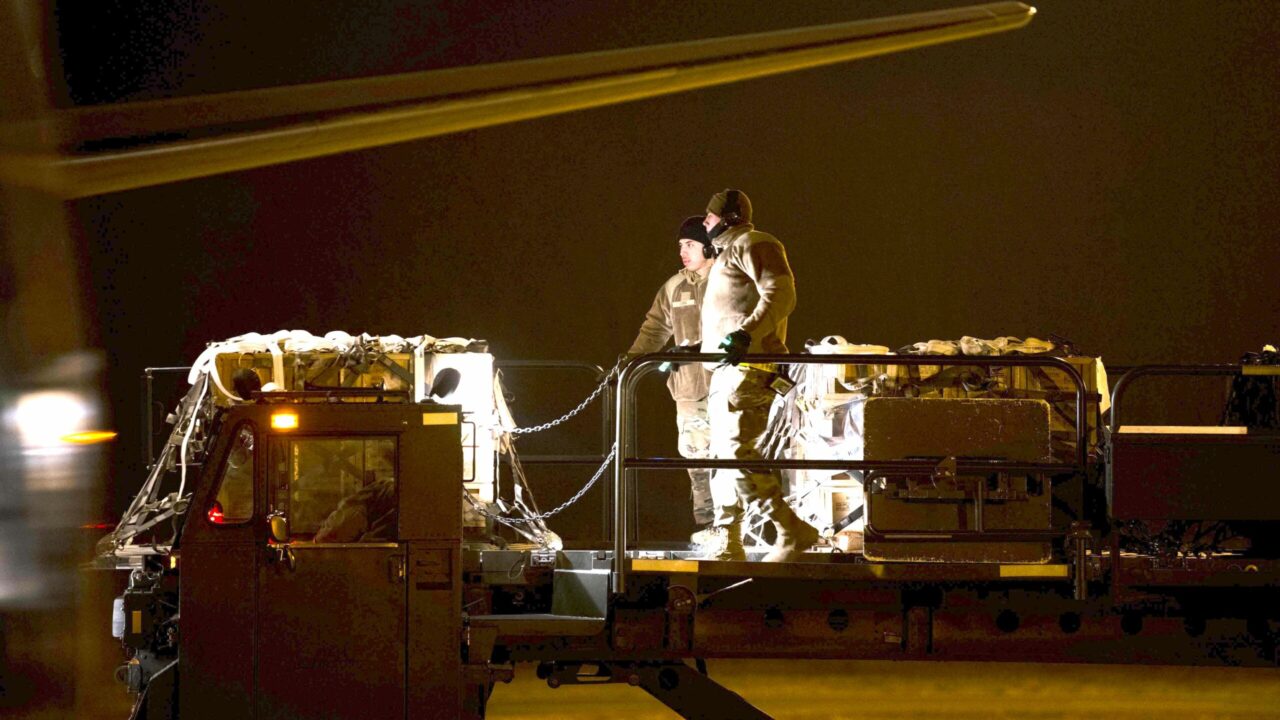 Airmen from the 436th Aerial Port Squadron load ammunition, weapons and other equipment bound for Ukraine during a foreign military sales mission at Dover Air Force Base, Delaware, Jan. 24, 2022. Since 2014, the United States has committed more than $5.4 billion in total assistance to Ukraine, including security and non-security assistance. The United States reaffirms its steadfast commitment to Ukraine’s sovereignty and territorial integrity in support of a secure and prosperous Ukraine. (U.S. Air Force photo by Tech. Sgt. J.D. Strong II) (Tech. Sgt. J.D. Strong II)