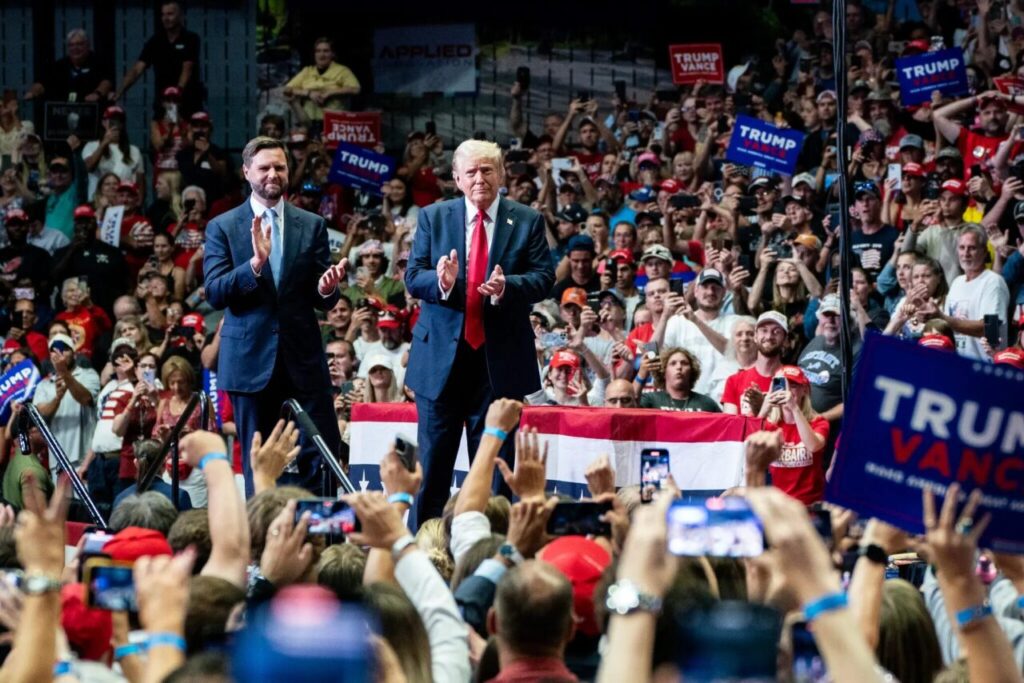 Former President Donald J. Trump and his running mate, JD Vance, have said that they want to reconsider the relationship between the United States and NATO, and America’s contributions to the alliance. Credit: Haiyun Jiang for The New York Times