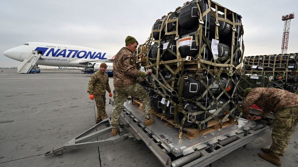 NATO states were already pouring arms into the Ukraine for years before the conflict escalated, and have sped up the deliveries since then. The US says it has provided 200 M113 APCs, 100 armoured Humvee utility vehicles, 90 M777 155mm howitzers with 183,000 rounds of ammunition, 16 Mi-17 helicopters, enough parts to return 20 derelict Ukrainian aircraft to service and 7,000 Javelin anti-tank guided missiles (ATGMs). Canada has given four more howitzers.