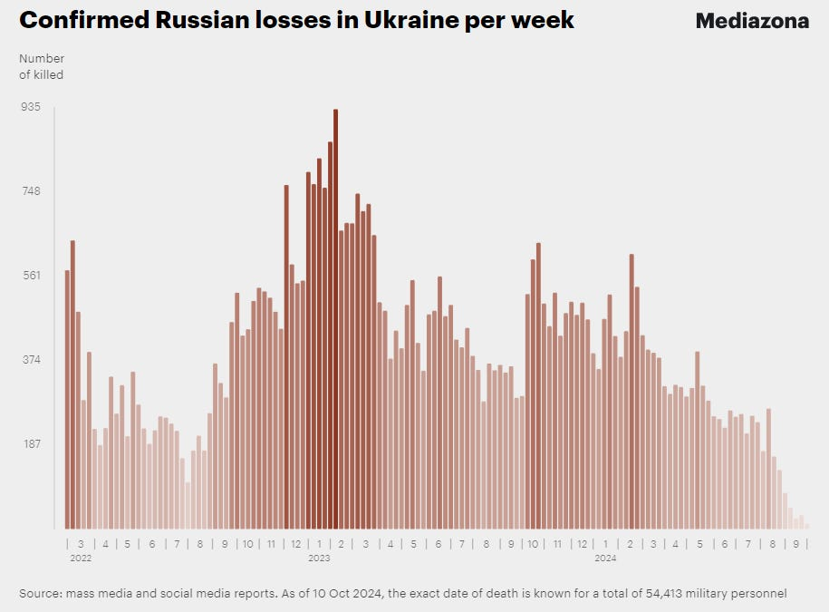 The standard for evaluating Russia’s performance in the Ukraine conflict should be grounded in reality, rather than propaganda or exaggeration. A recurring Western narrative claims that Russia is suffering massive casualties from “meat assaults” on Ukrainian fortresses. However, even Mediazona, a well-known anti-Putin Russian outlet working with BBC News Russian service, estimates Russian dead at around 80,000. Rounding up generously brings that figure to 100,000. The highest losses occurred during the battle for Bakhmut in late 2022 and early 2023, but since then, Russian casualties have been relatively low throughout 2024. While every loss is tragic, the notion that Russia will suddenly collapse under the weight of unbearable losses is not supported by the available data. Such claims seem rooted more in “wishcasting” and denial of defeat rather than in a sober analysis of the conflict’s realities.