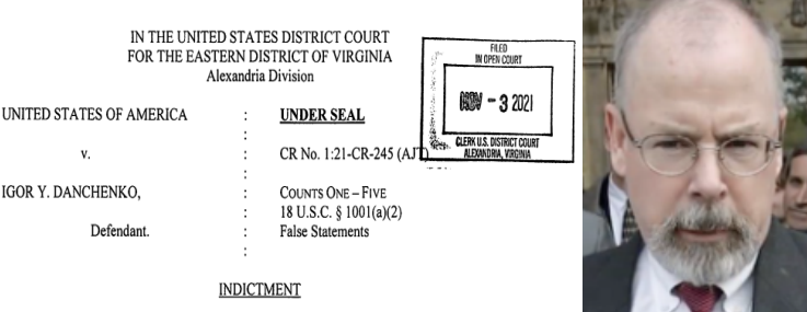 The Justice Department’s indictment of Danchenko was released at his court hearing on November 3. In simple English, the indictment makes clearer reading than the reporters who make their trade feigning indignation at the reporting of their rivals in the media business. More about them in a moment; start by reading the indictment signed by Justice’s special counsel John Durham here.