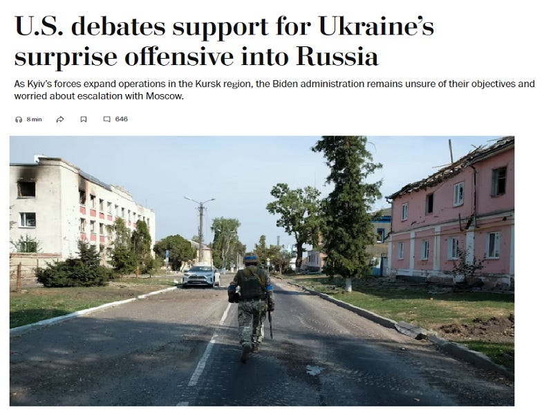 The Washington Post cited unnamed administration sources to report that “U.S. debates support for Ukraine’s surprise offensive into Russia”, which suggests that some policymakers doubt that Ukraine’s invasion of Kursk advances American interests. To be sure, the US knew about this move ahead of time (if not actively participated in its planning) but didn’t thwart it, thus tacitly approving it. Nevertheless, five arguments exist for why this actually harms American interests, and they are as follows: