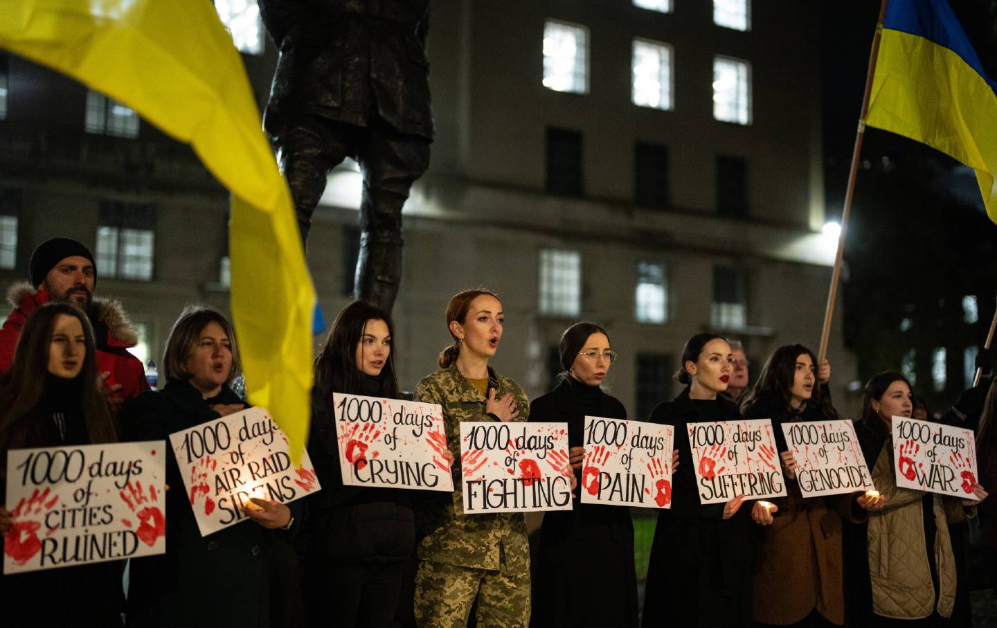 Demonstrators in London, England, take part in a rally on November 19, 2024, to mark 1,000 days since Russia’s invasion of Ukraine.