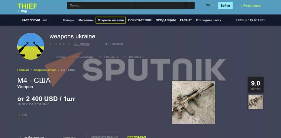 Screenshot of “weapons Ukraine” shop on the THEIF dark web marketplace © Sputnik