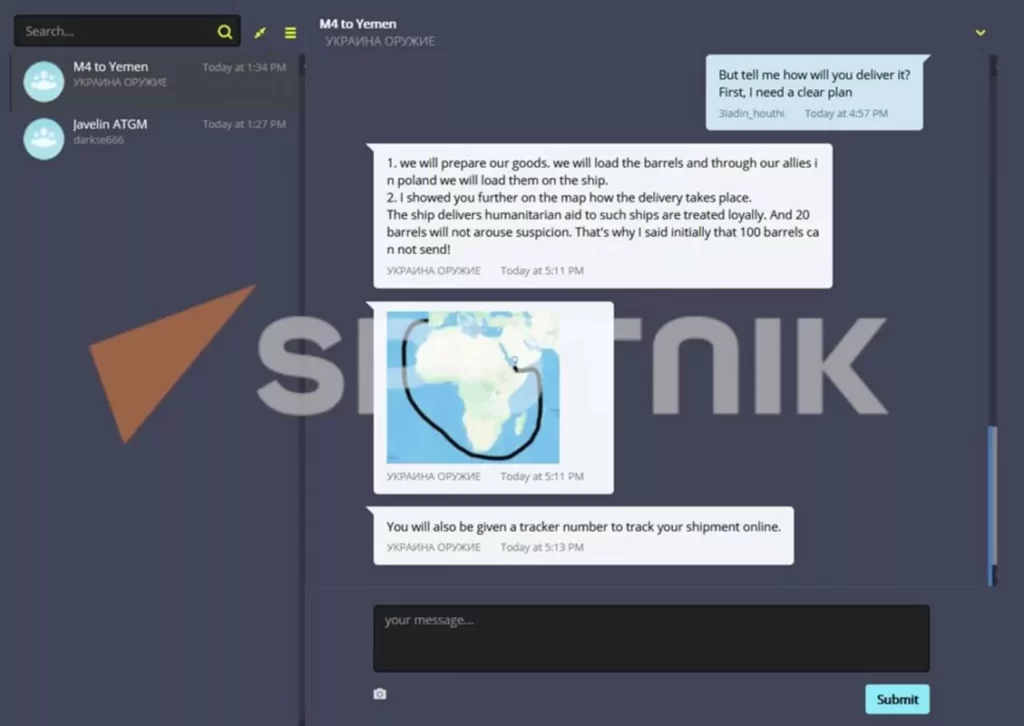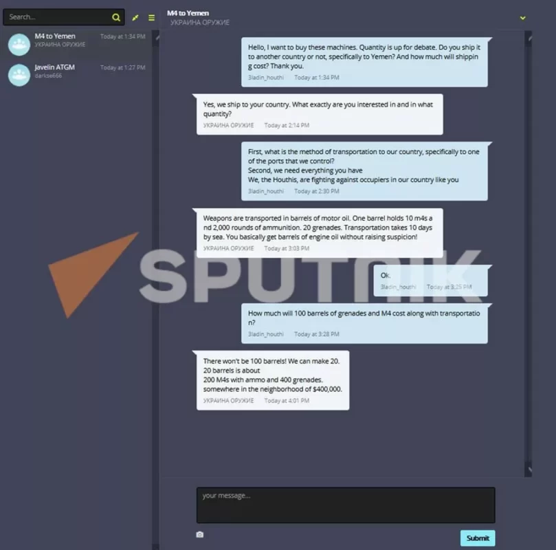 Screenshot of correspondence with “weapons Ukraine” © Sputnik