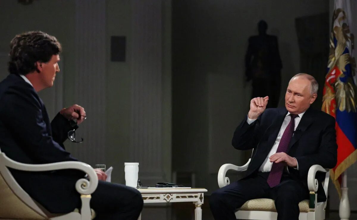 Tucker Carlson interviewing Russian President Vladimir Putin in February 2024. Photo: Wikipedia / kremlin.ru