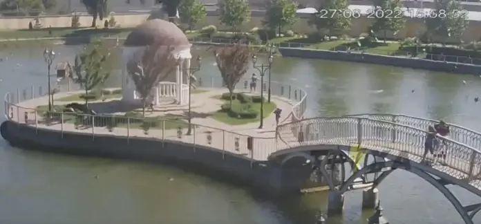 The Ukrainian government published surveillance video from a park located next to the machine plant which caught the moments of the two explosions, Moon notes.