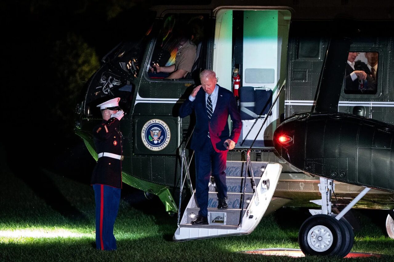 President Biden disembarking from Marine One on Tuesday after arriving at the White House. Credit: Haiyun Jiang for The New York Times
