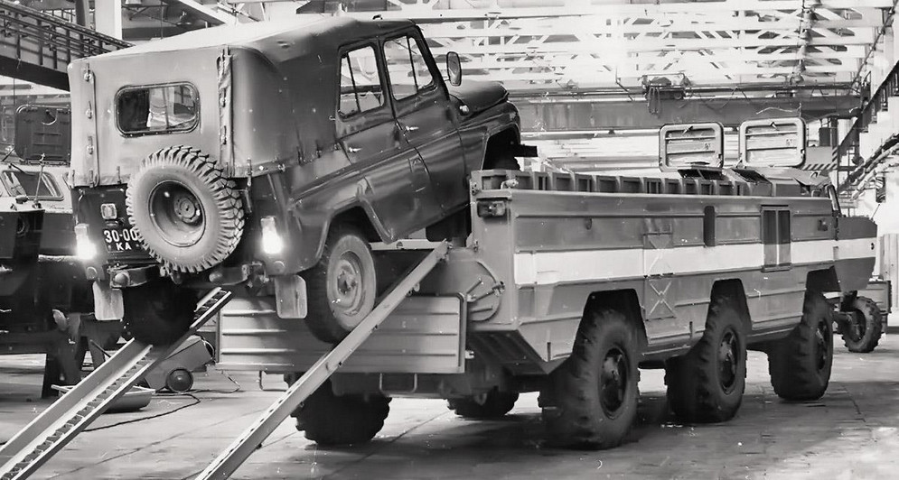 The TEL vehicle for the Tochka is a six wheeled BAZ 5921 /5922. These are amphibious floating hull chassis. The picture below shows a BAZ TEL in parade mode with a Tochka missile slightly erected. In the normal transport mode the missile lies horizontally under a protective roof.