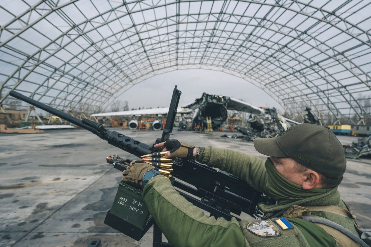 A Ukrainian soldier loads ammunition into an M2 Browning machine gun.Photographer: Andrew Kravchenko/Bloomberg