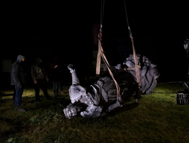 These Ukrainian nationalists eventually succeeded in forcing Tarpon to flee to exile in the United Emirates to escape charges of embezzlement; these same nationalists later flocked to Odessa in May 2014, where they set fire to a building where pro-Russian demonstrators had gathered, leading to the deaths of 48 persons. The Russian invasion of Ukraine in February 2022 provided the final impetus for the Ukrainian nationalists to remove the monument.