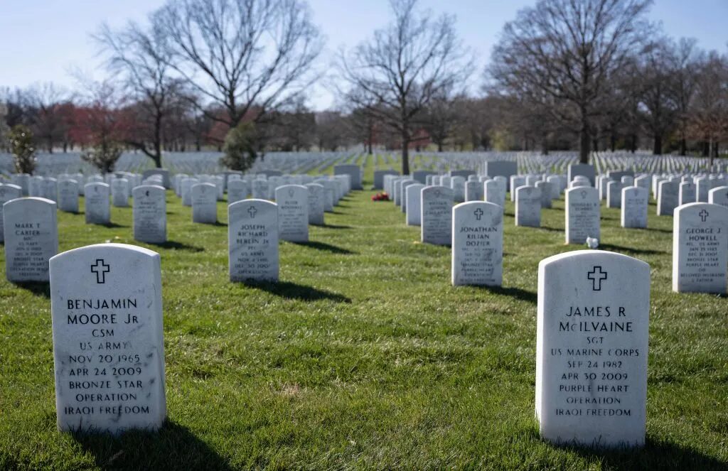 Headstones for soldiers killed in Operation Iraqi Freedom are seen in Section 60 of Arlington cemetery in Arlington, Virginia (Getty)