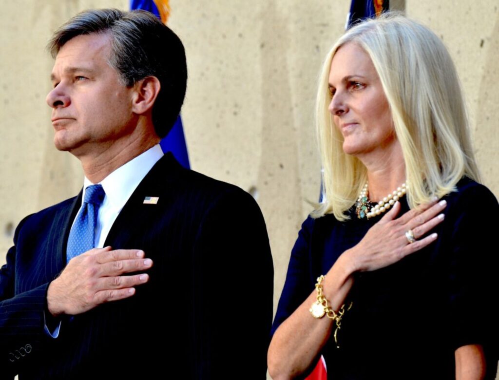 Christopher Wray with his wife Helen swearing in as F.B.I. director in 2017. (FBI, Wikimedia Commons, Public domain)