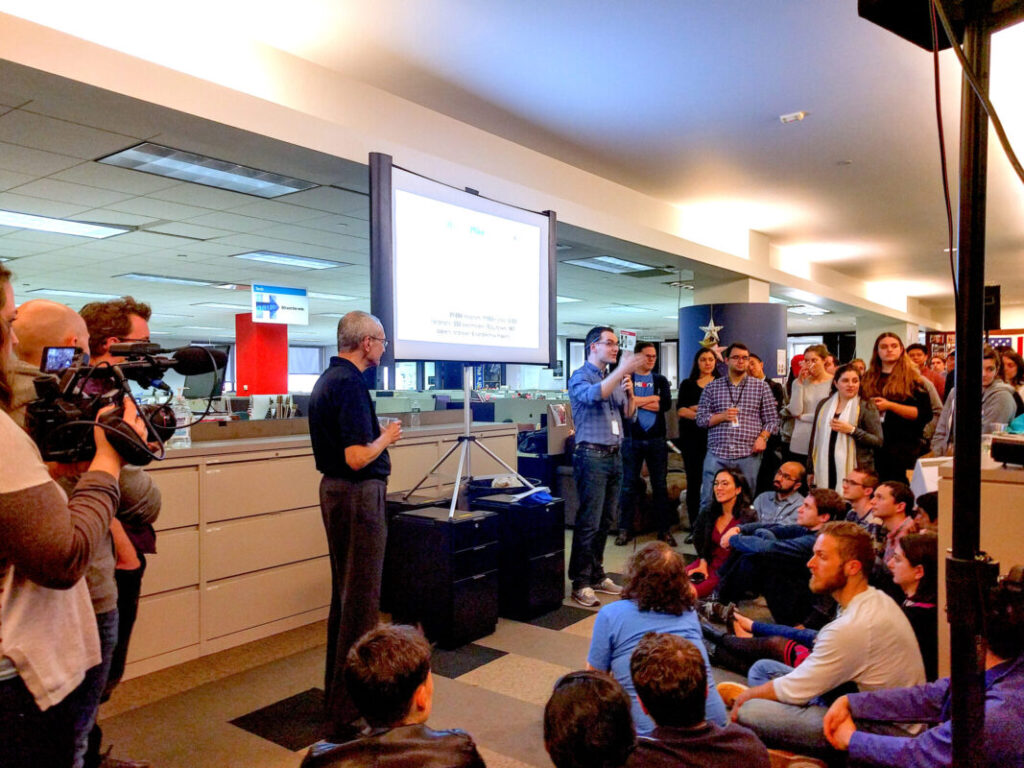 Robby Mook addresses team meeting of Hillary Clinton’s election campaign, April 2016. (Nat Welch, Wikimedia Commons, CC BY-SA 2.0)
