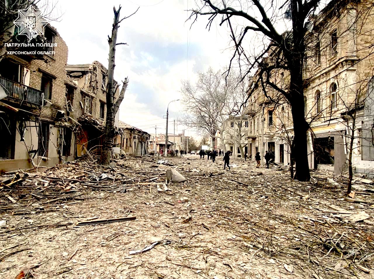 Kherson street after Russian strike on the city center on Feb. 2. (National Police of Ukraine, Wikimedia Commons, CC BY 4.0)