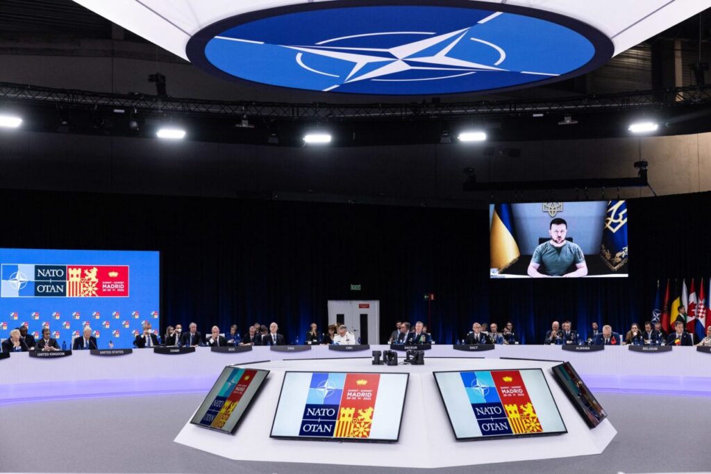 Ukraine’s President Volodomyr Zelensky addressing NATO summit in Madrid, June 2022. (NATO)