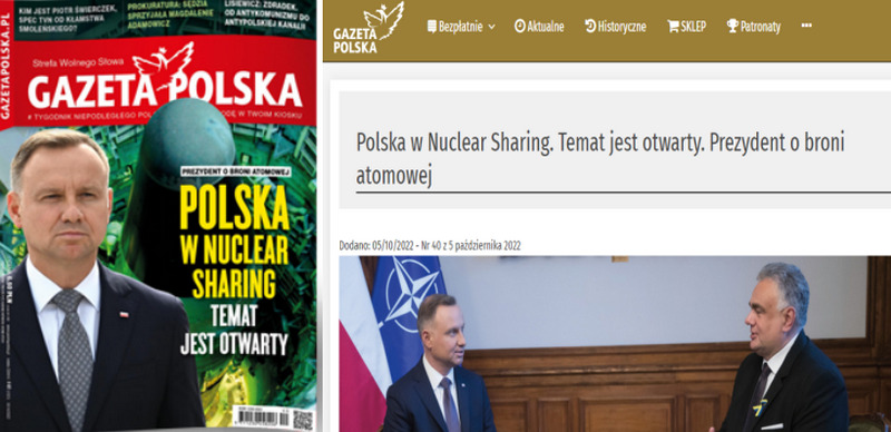The banner on this week’s cover of Gazeta Polska and the headline on its website read: “Poland in Nuclear Sharing. The topic is open.”