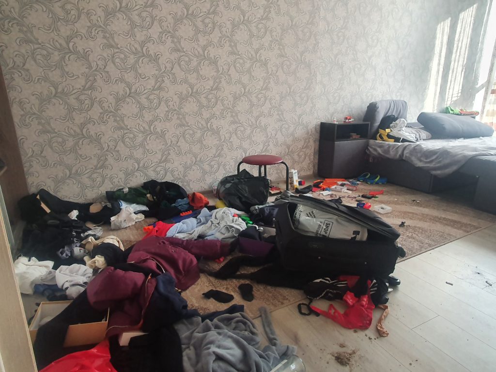 One of the many apartments that were torn apart by Russian occupiers in the town of Hostomel, photographed on April 8, 2022. (The Kyiv Independent)