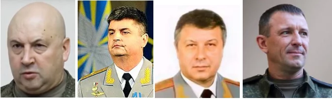 Left to right: Russian generals Sergei Surovikin, Andrei Yudin, Vladimir Alexeyev, and Ivan Popov.