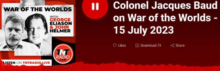 Leading the discussion in the July 15 broadcast of TNT Radio’s War of the Worlds is Jacques Baud. A former Swiss Army officer, he has trained with US, British and German intelligence agencies, and served in NATO assignments, including the Ukraine. His latest article can be read here[20]. His books include essays on the Ukraine war[21]; a biography of President Putin[22]; and an analysis of the western propaganda on the case of Alexei Navalny[23].