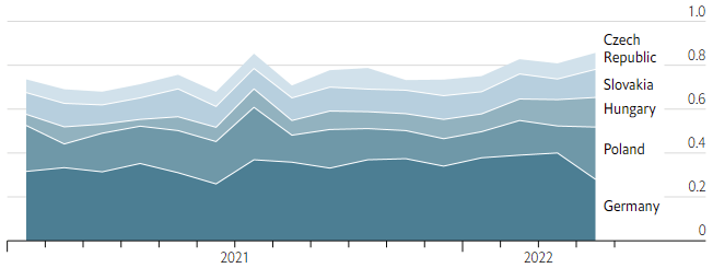 The Druzhba pipeline (Russian for “friendship”) supplies refineries in the Czech Republic, Germany, Hungary, Poland and Slovakia. Germany and Poland, the two biggest recipients, have agreed to turn off the taps by the end of the year. The embargo will then cover about 90% of Russian oil. It is unclear when the remainder will be cut off. The other recipients, all landlocked countries, say it would be costly and difficult to switch to other sources of crude. Slovakia relied on Russia for 92% of its oil in November 2021; Hungary gets 65% of its oil from Russia. Both import nearly all of it through Druzhba.