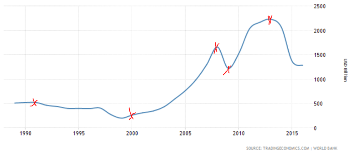 Graph showing economic boom under Putin where Russian GDP increased by over six times. [Source: rcgroups.com]