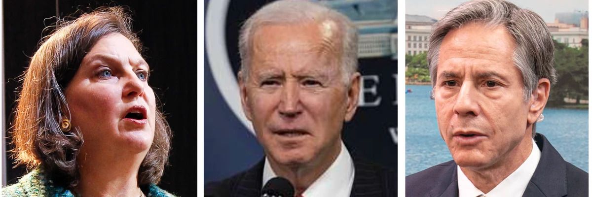 Victorial Nuland (Flickr/Brookings Institute); President Biden (DoD); Antony Blinken (Department of State)
