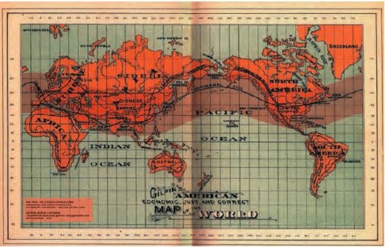 He even made a map of it, confidently called “Gilpin’s Economic, Just and Correct Map of the World”. Talk about go big or go home.