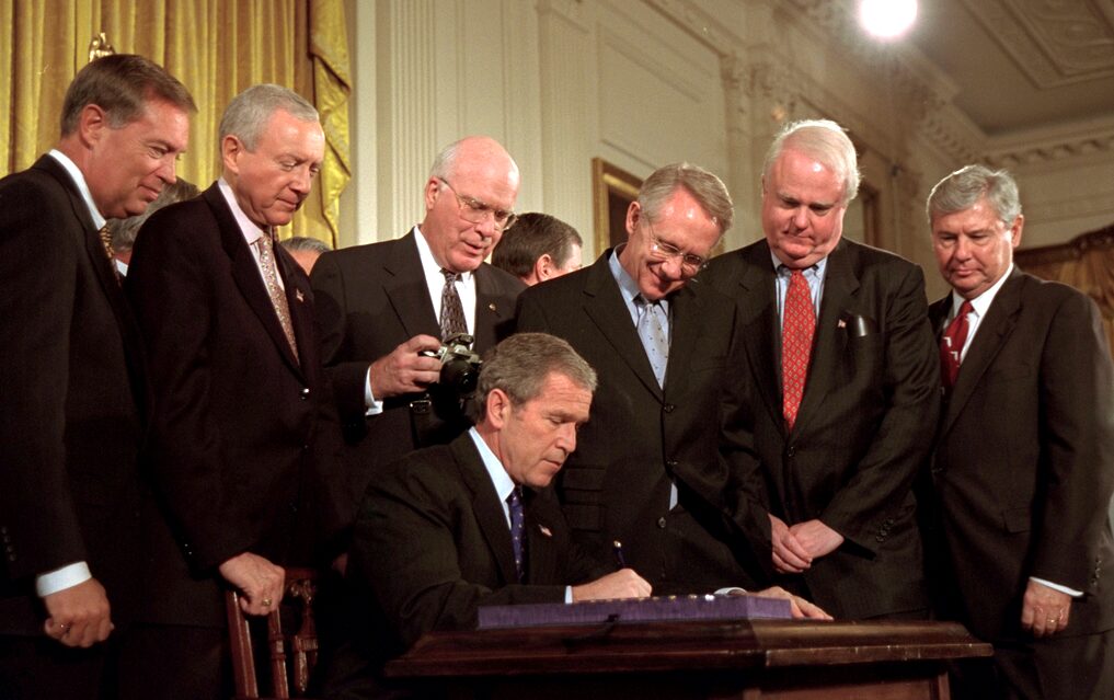 President George W. Bush signing the USA Patriot Act in the White House on Oct. 26, 2001. (U.S. National Archives)