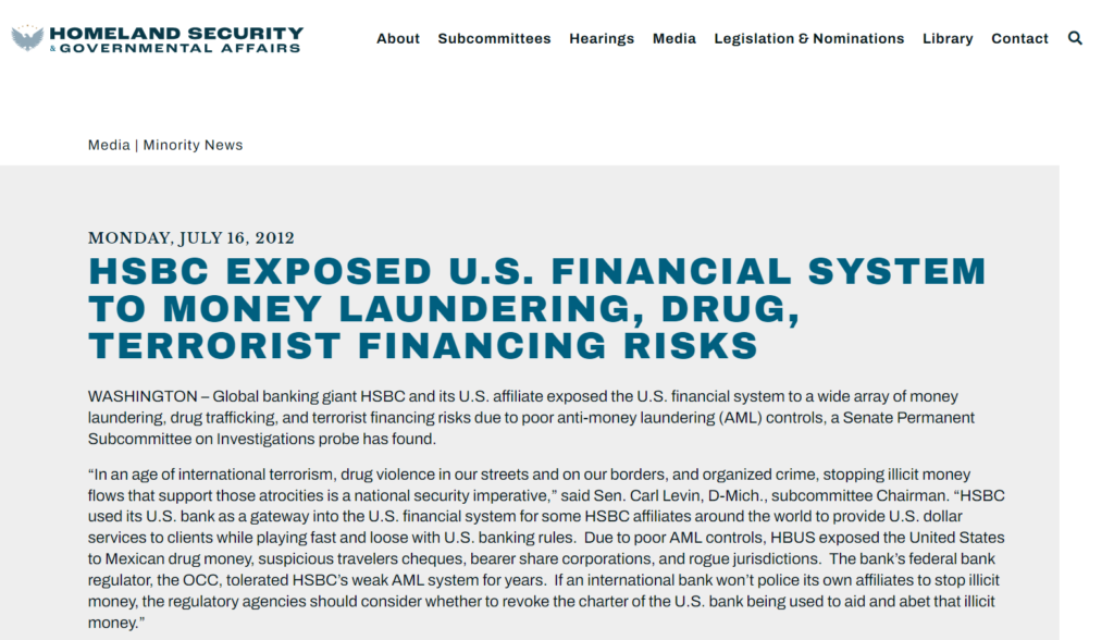In the two years before the Senate Report came out, HSBC was