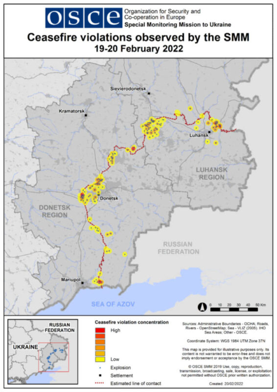On 17 February, President Joe Biden announced that Russia would attack the Ukraine in the next few days. How did he know this? It is a mystery. But since the 16th, the artillery shelling of the population of Donbass increased dramatically, as the daily reports of the OSCE observers show. Naturally, neither the media, nor the European Union, nor NATO, nor any Western government reacts or intervenes. It will be said later that this is Russian disinformation. In fact, it seems that the European Union and some countries have deliberately kept silent about the massacre of the Donbass population, knowing that this would provoke a Russian intervention.