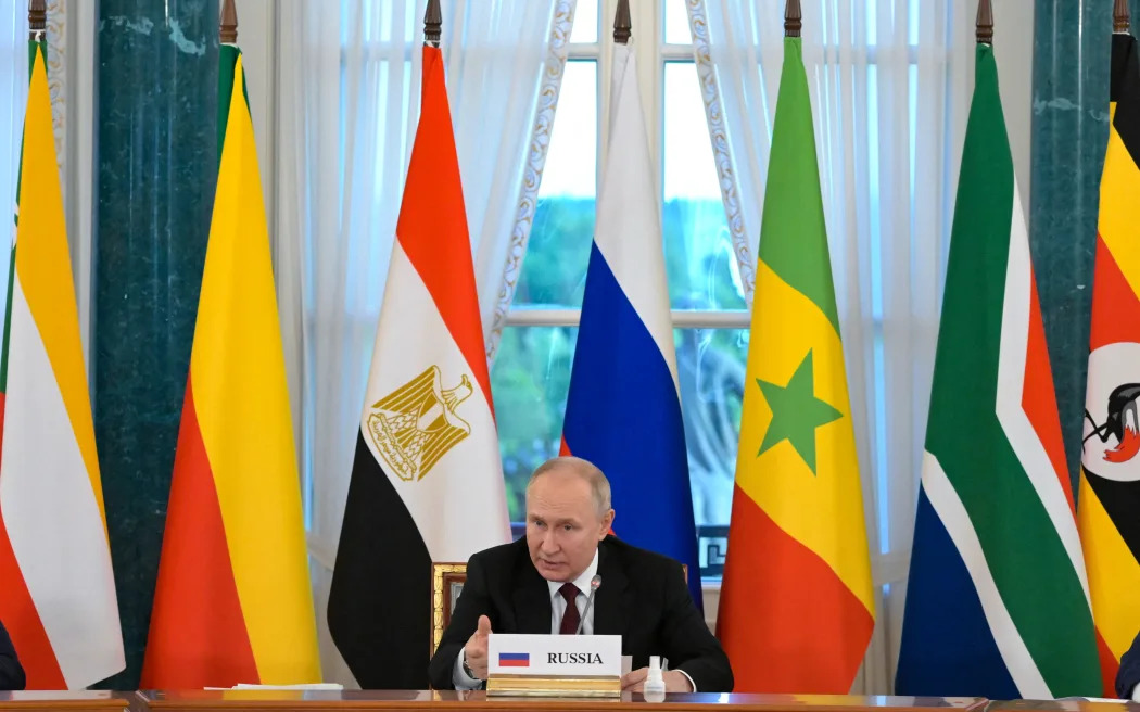 But the initialled agreement went no further. “We actually did this,” Putin told war correspondents at the Kremlin, “but they simply threw it away later and that’s it.” Talking to the African delegation, Putin said, “After we pulled our troops away from Kiev – as we had promised to do – the Kiev authorities … tossed [their commitments] into the dustbin of history. They abandoned everything.” But Putin did not primarily blame Ukraine. He implicitly blamed the US, saying that when Ukraine’s interests “are not in sync” with U.S. interests, “ultimately it is about the United States’s interests. We know that they hold the key to solving issues.”