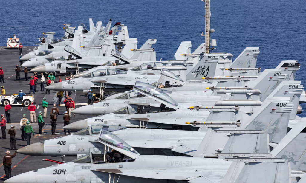 The US aircraft carrier USS Gerald R Ford in the eastern Mediterranean, 13 October 2023. Photograph: Maxwell Orlosky/US Navy/AFP/Getty Images