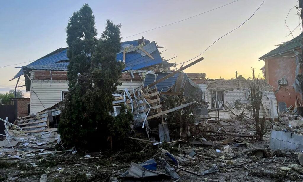 An image published by the acting governor of the Kursk region, Alexei Smirnov, on his Telegram channel shows damaged homes in the town of Sudzha Photograph: Governor of Kursk region