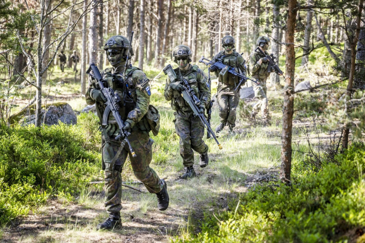 Swedish and Finnish soldiers perform war simulation exercises during the Baltic Operations NATO military drills in the Stockholm archipelago on June 11. (Jonas Gratzer / Getty Images file)