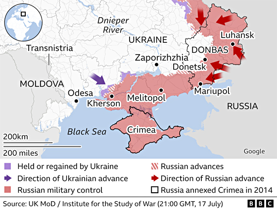 Also today, U.S. Defense Secretary Lloyd Austin announced the US will provide Ukraine with four more Lockheed-Martin-built M142 High Mobility Artillery Rocket Systems (HIMARS), bringing the total to 16. The range of the systems provided reportedly are 80 kilometers (50 miles). He noted that Ukrainian troops have been able to use the systems “effectively” and that they have already “made a difference on the battlefield.”
