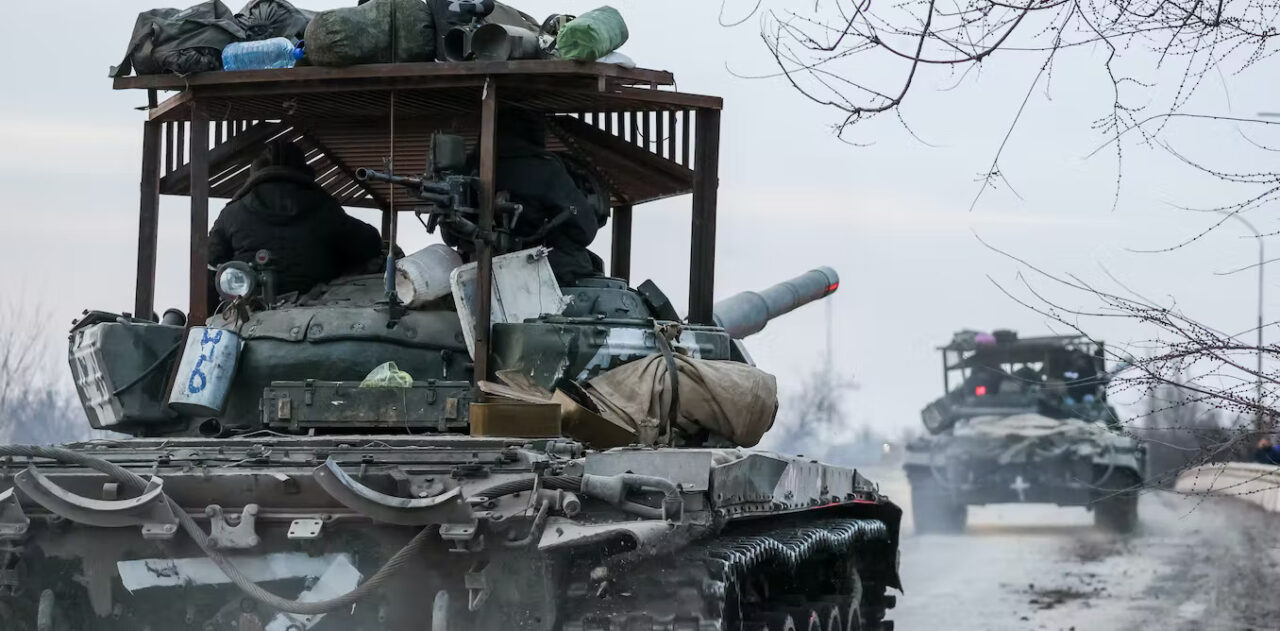 On Feb. 24, Russian tanks moving into Ukraine. Sergei Malgavko\TASS via Getty Images)