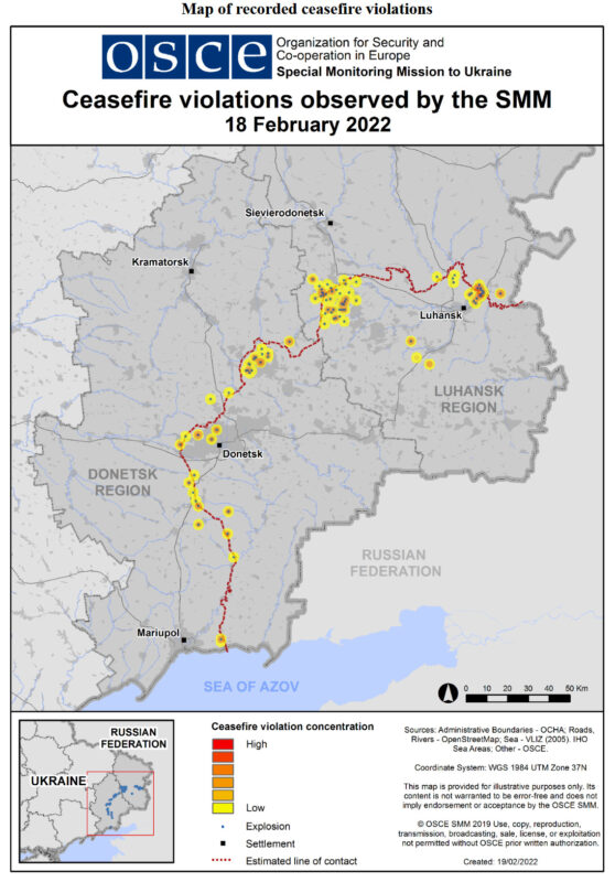 It reports that on Friday the number of ceasefire violations around the rebellious Donbas region of Ukraine had againnearly doubled: