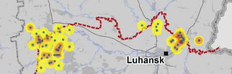 The OSCE observer mission helpfully provides maps in its daily reports that show the impact points of artillery attacks. Yesterday a large majority of those were within the rebel controlled areas.