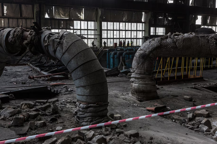 A thermal power plant is damaged in a Russian airstrike in Ukraine on April 2. (Oksana Parafeniuk for The Washington Post)