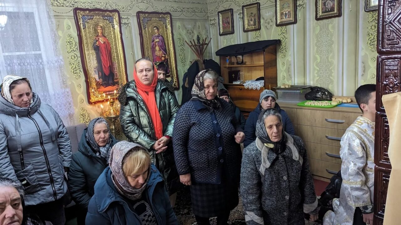 A crowd of faithful gathered outside, waiting for the arrival of Metropolitan Melety. The village was still, apart from a few dogs occasionally barking. The roads were unpaved, and the modest single-story building looked more like a barn than a church. Once liturgy began, the old and the young kneeled against the frigid pavement. Children were hugging a heater failing to rise to the occasion. Parishioners kept their winter jackets and gloves on. The room was too small for the parish’s 50 families. Two altar boys were coming and going to the back of the room to retrieve the necessary items for the mass from two large suitcases.