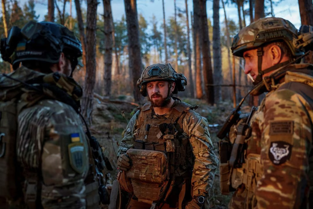 Servicemen of the 67th Mechanized Brigade of the Armed Forces of Ukraine appear at a position at a front line near Kreminna in the Luhansk region, Ukraine, November 2. REUTERS/Alina Smutko