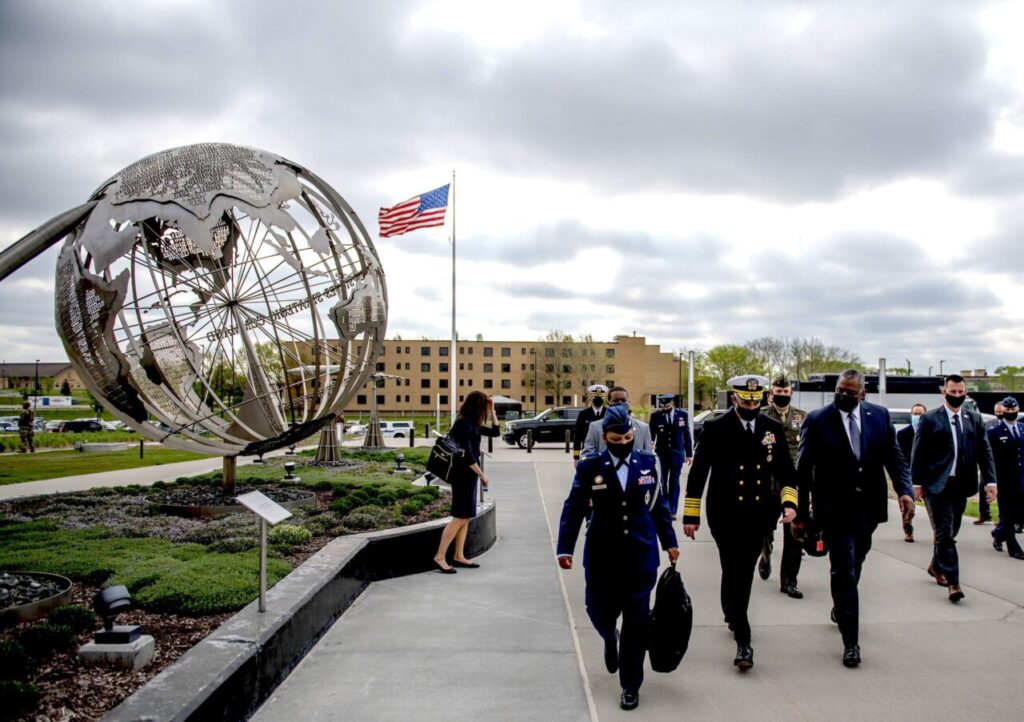 U.S. Secretary of Defense Lloyd Austin in May 2021, visiting Offutt Air Force Base, Nebraska. (U.S. Air Force, Brittany A. Chase)