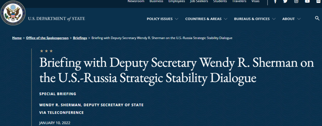 Sherman’s Open Door declaration placing Ukraine at qualified third priority: “We will not allow anyone to slam closed NATO’s “Open Door” policy, which has always been central to the NATO Alliance. We will not forego bilateral cooperation with sovereign states that wish to work with the United States. And we will not make decisions about Ukraine without Ukraine, about Europe without Europe, or about NATO without NATO. Source: https://www.dw.com/